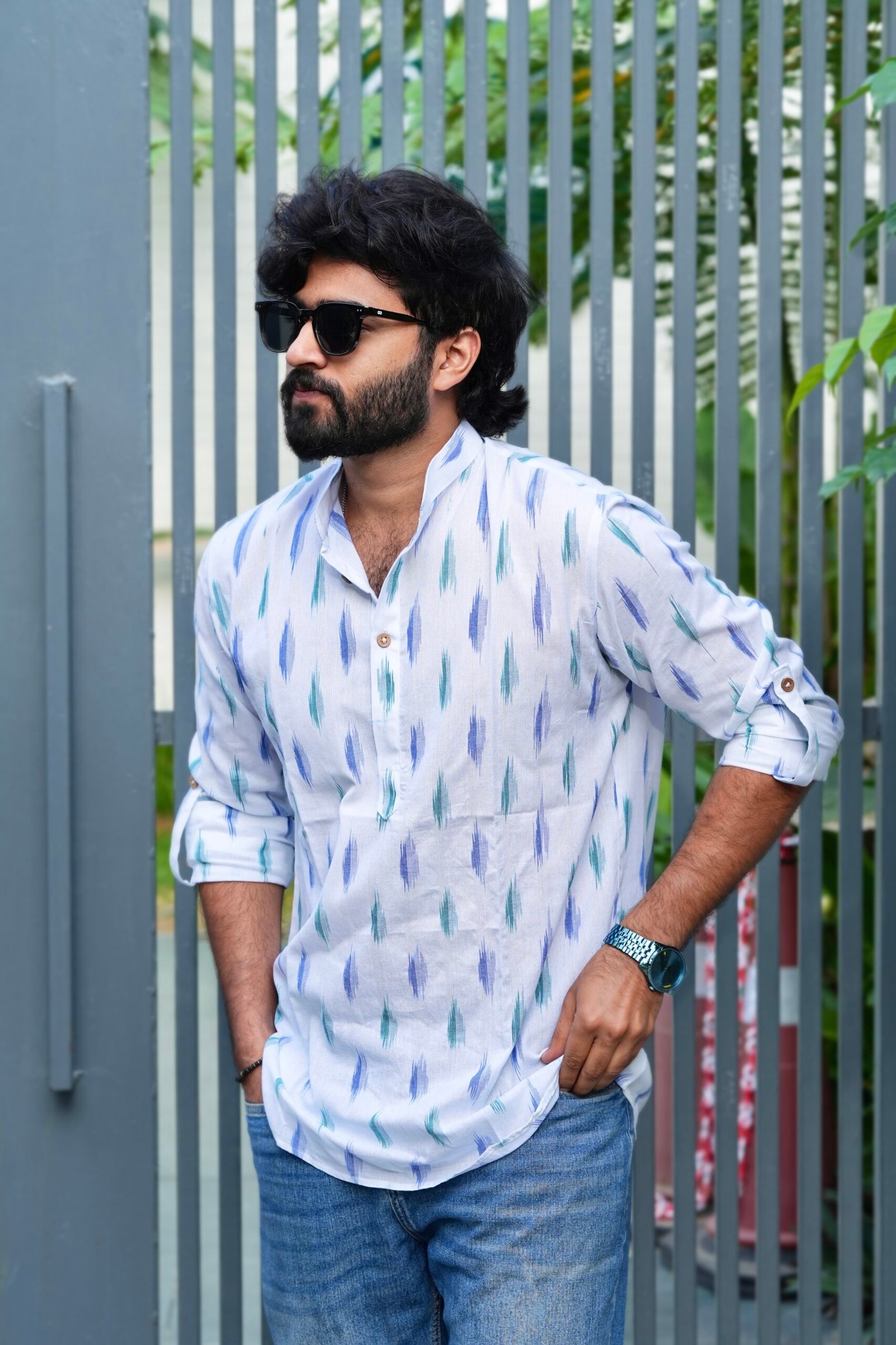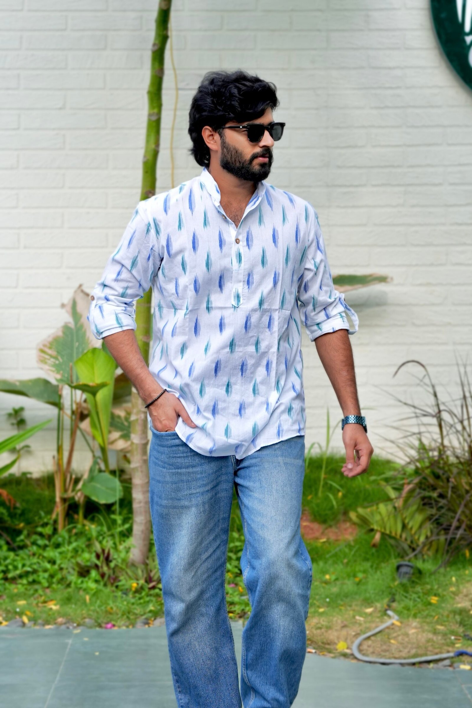 Aqua Blue – Ikat Cotton Short Kurta
